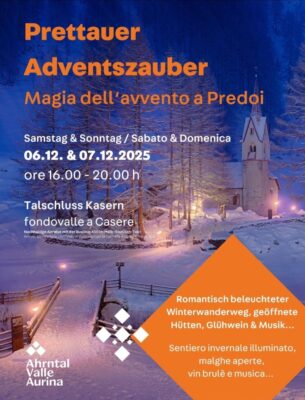 Partendo dal Centro di Visite del Parco Naturale i visitatori possono aspettarsi una serie di delizie dell’Avvento come musica natalizia, presepi, ecc. lungo il romantico sentiero escursionistico invernale illuminato fino alle malghe di “Trinkstein” aperte